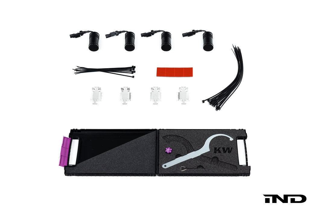 The KW Variant 4 coilover suspension for BMW X5M (F95) and BMW X6M (F96), with three-way high-performance dampers, is an ideal way to combine the demand for a continuously adjustable lowering with increased handling, ride comfort, and driving performance. The damper technology developed by KW automotive, which was also used in the original equipment of the limited production run of the BMW M4 GTS, ensures a significant improvement in cornering stability even at high velocities. The body’s tendency to roll in fast corners is greatly reduced. KW suspensions developed the Variant 4 with the focus on driving enjoyment while improving the vehicle dynamics.