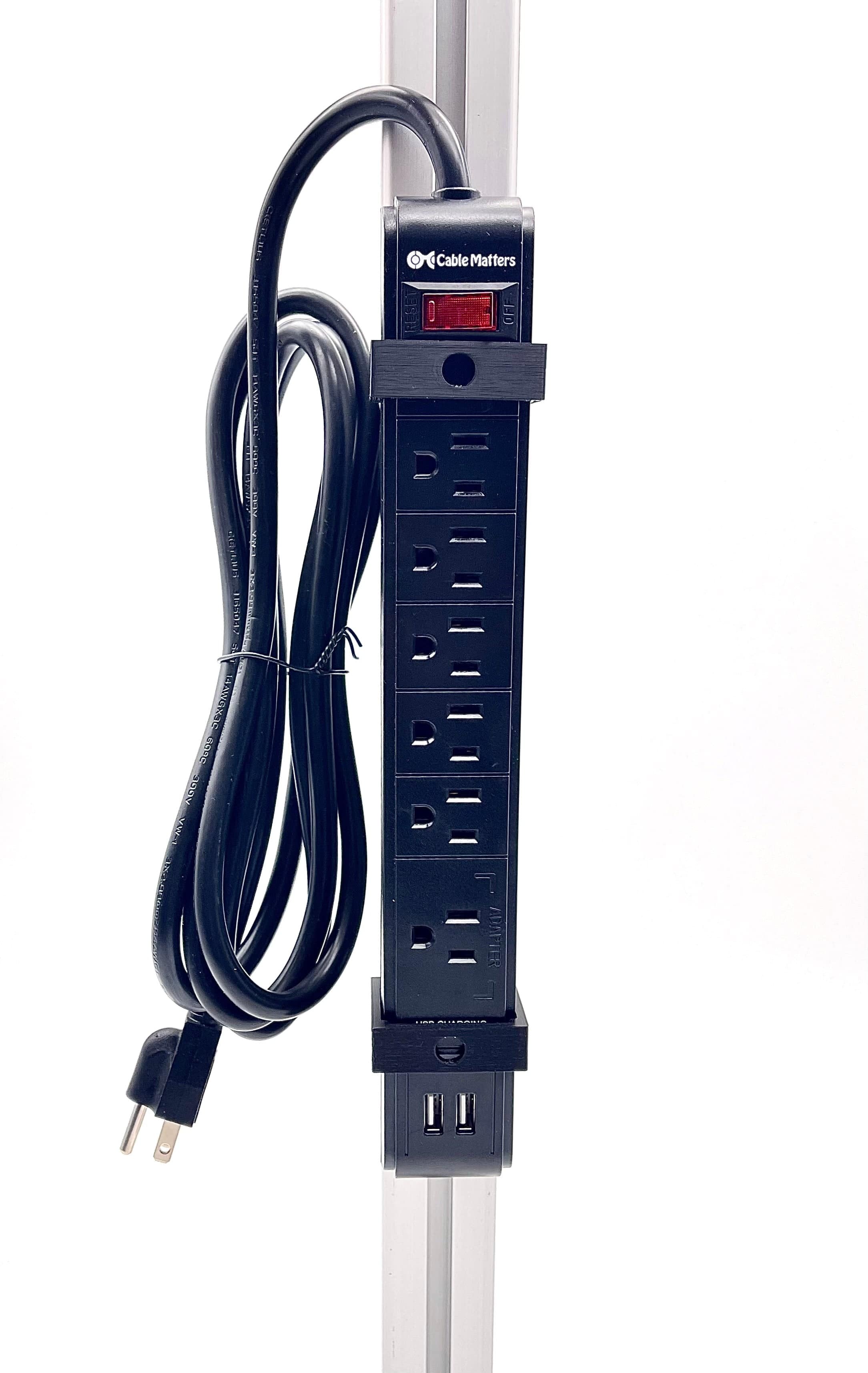 A neat and tidy way to mount the included 6-outlet power strip to your sim racing rig. The strip has 6 outlets and 2 USB ports. Great for triple monitors, fans, or other devices. Mounting the power strip on your sim rag is very easy. A few tnuts/bolts with the mount, and you are done.
