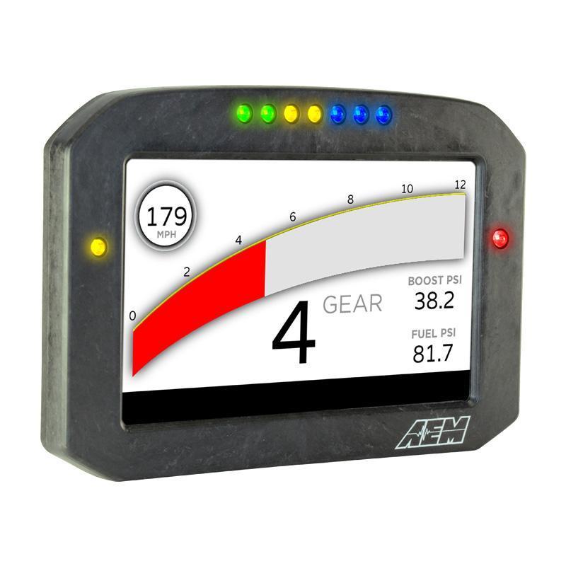 VIEW AND LOG DATA FROM OVER 250 CAN-ENABLED DEVICES: CD Carbon Dashes receive channels from CAN bus inputs and do not require special modules to read AEM and/or non-AEM CAN signals. They communicate with 45 AEM devices, are in-house tested to work with 159 non-AEM devices and we have DBC CAN files for 52 more non-AEM devices.