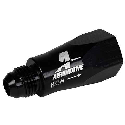 Please Note: The Aeromotive check valve is NEVER to be used as a fuel tank "roller-vent valve" or located on the inlet side of any fuel pump.