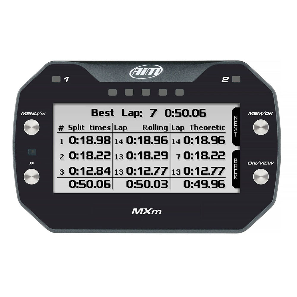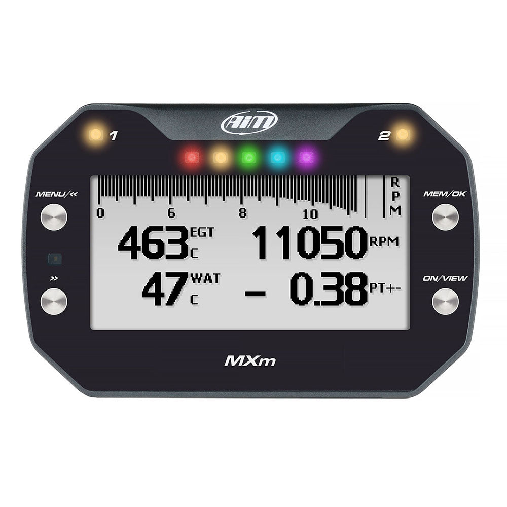 The MXm from AiM is the compact dash logger with big features to put all the information you need right at your fingertips. It samples and shows key info like speed, lap times, RPM, gears, data from a nine-axis inertial platform, multiple math channels and much more. It is compact (5.4 x 3.5 x 1.3 in.), making it perfect for sports cars and bikes, and it's plug-and-play for ease-of-use. Complete but simple, MXm is the perfect device for both Pro and Amateur drivers.