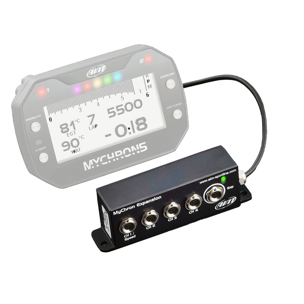 The AiM MyChron Expansion is an add-on for the MyChron or MyChron6 Kart Racing Data Logging Dash. It plugs into the CAN expansion port on your MyChron dash to expand its capabilities. The AiM Expansion has a single CAN expansion port plus four additional sensor inputs. All four inputs can accept common karting sensors (brake/throttle pedal position, temperature, steering angle, etc.). One of the four inputs can accept a speed sensor instead. Requires an external 12-volt power source such as your kart's battery.