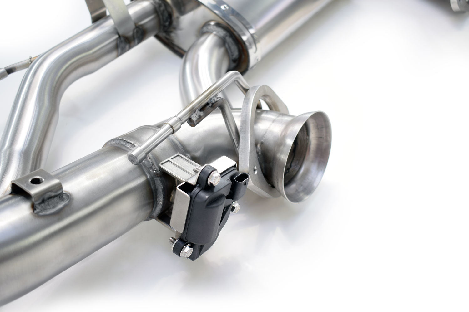 Electronic/Pneumatic Valves - Retains OEM (in-car) functionality. Our active valve sport exhaust systems contain two separate gas paths, and an electronic or pneumatic flap-valve that decides which path is taken. Both have two distinct levels of sound and are slightly louder than stock. With the valves closed, the system takes on a more civilised note and when they’re open, you’re given a sporty note throughout the rev range. These valves are integrated into the car’s existing controls and function depending on the ECU mapping. This can then be further manipulated either with the dedicated exhaust button or by switching the driving modes. |