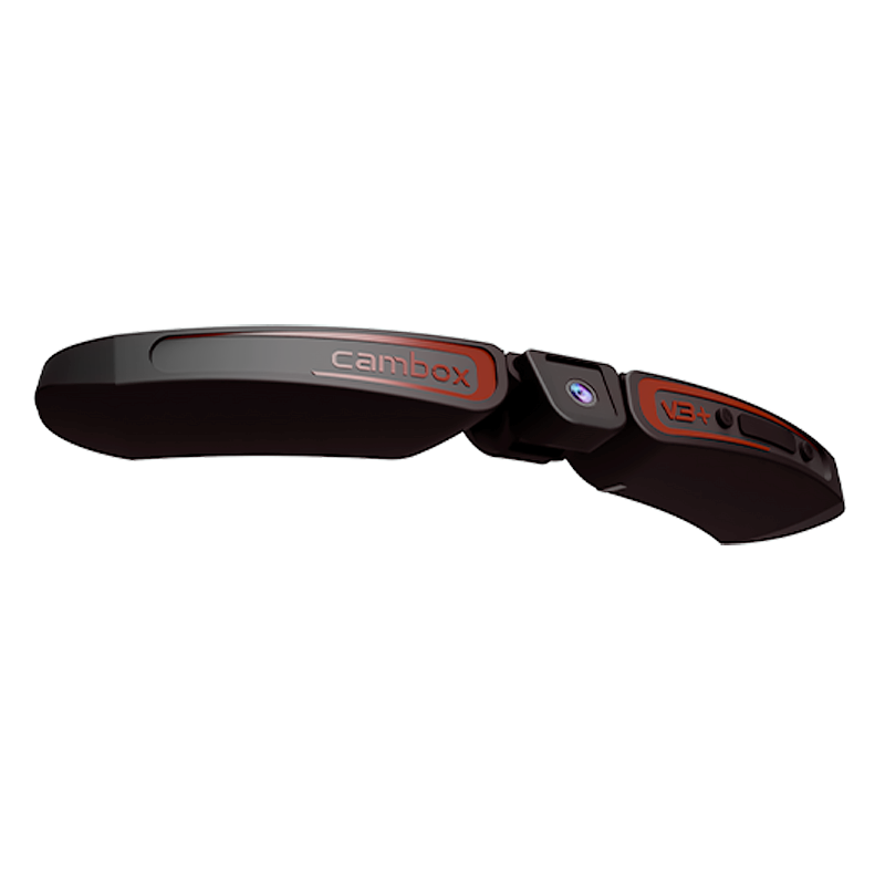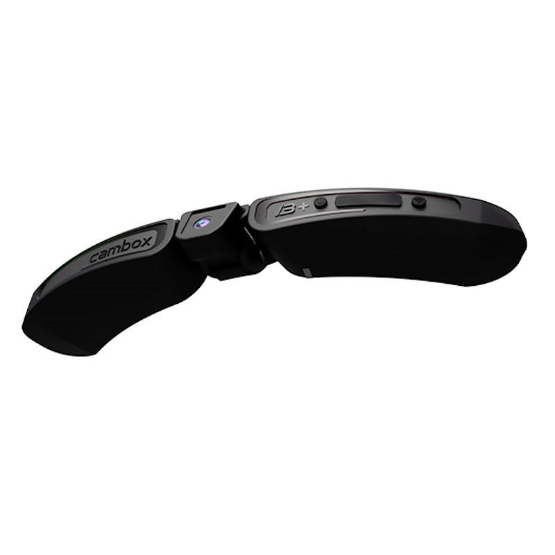The Cambox V3+ was designed to fit unobtrusively in all competition helmets. It's also equipped with two articulated arms to adapt to different helmet and visor shapes, whether they are rounded or angled.