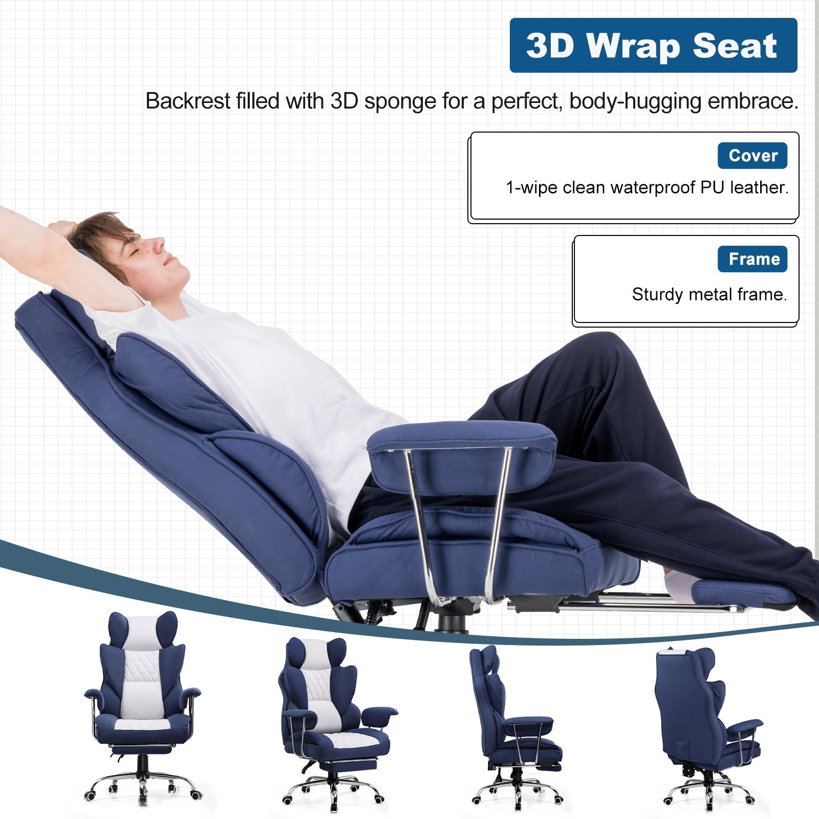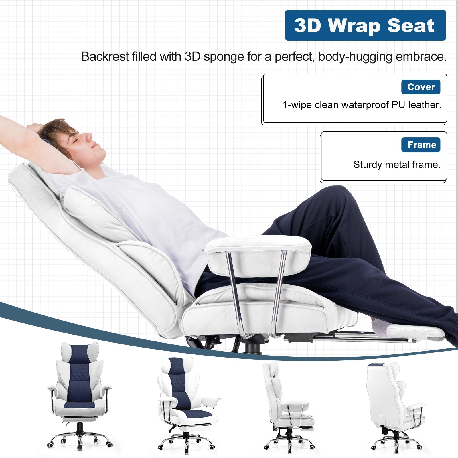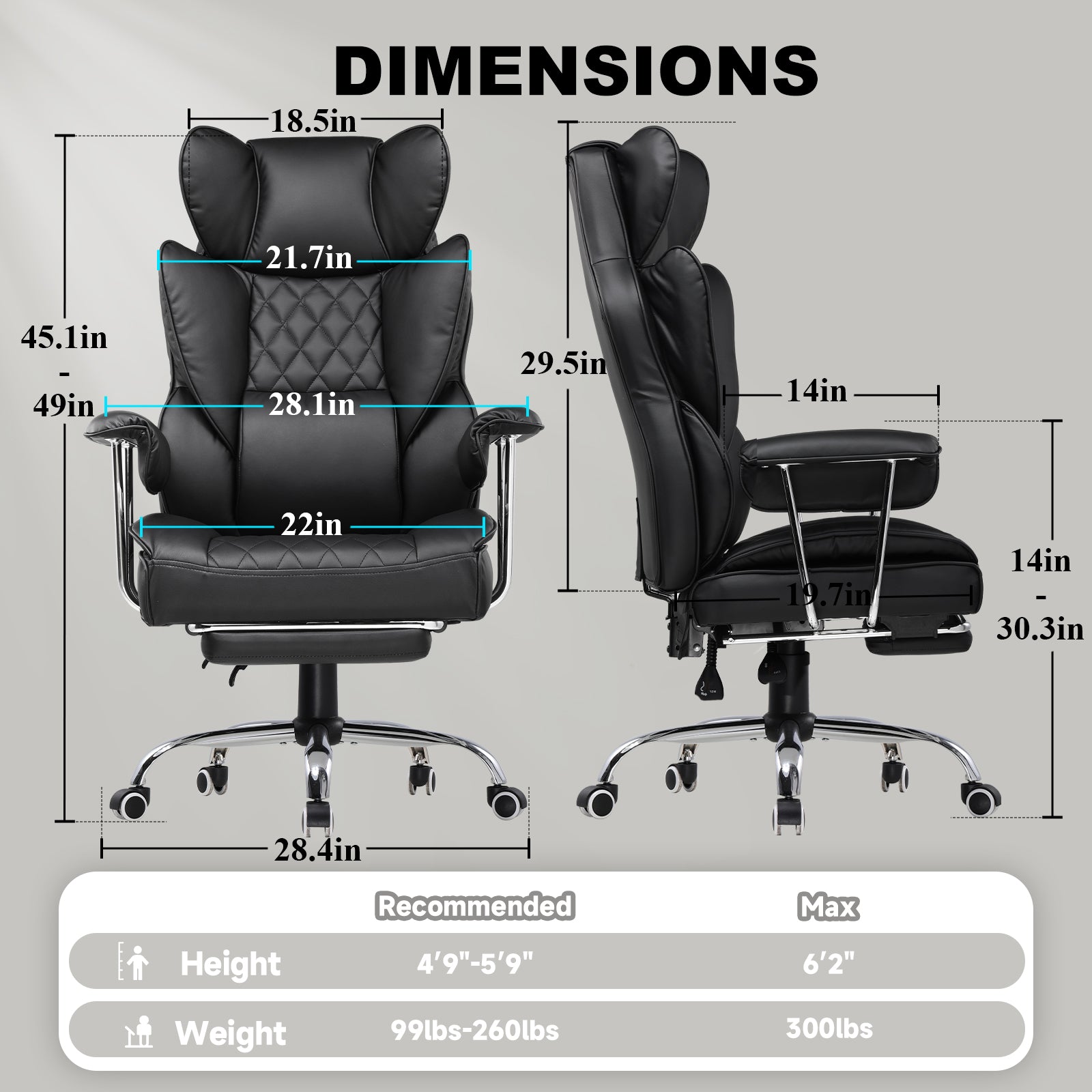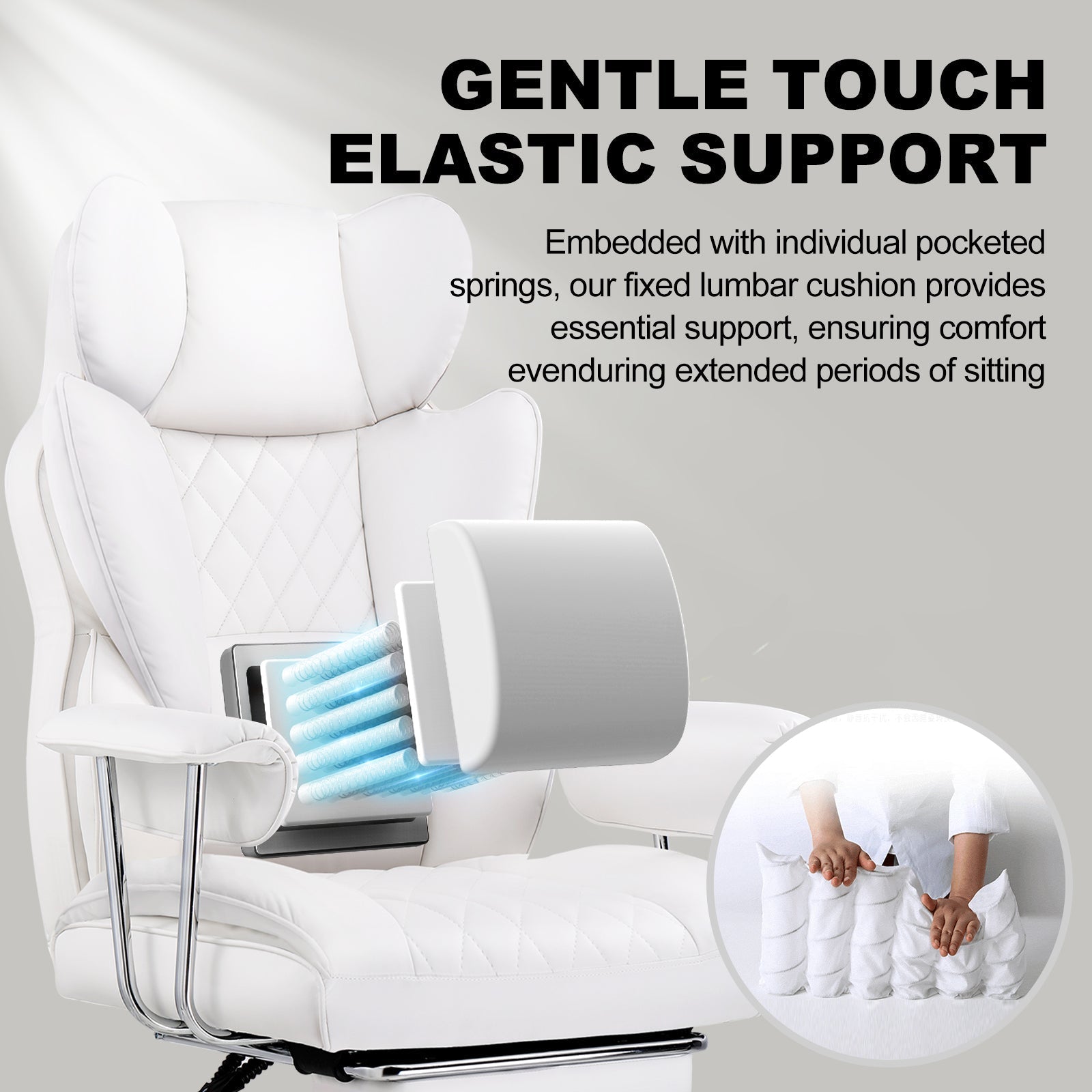 • 【Sofa-like Seat】 This executive chair features a pocket spring cushion, providing elasticity while helping to dissipate heat from prolonged sitting. The widened seat eliminates restricting side wings, coupled with an adjustable footrest, allowing you to sit in any position comfortably. It's as casual and free as sitting on your own sofa.