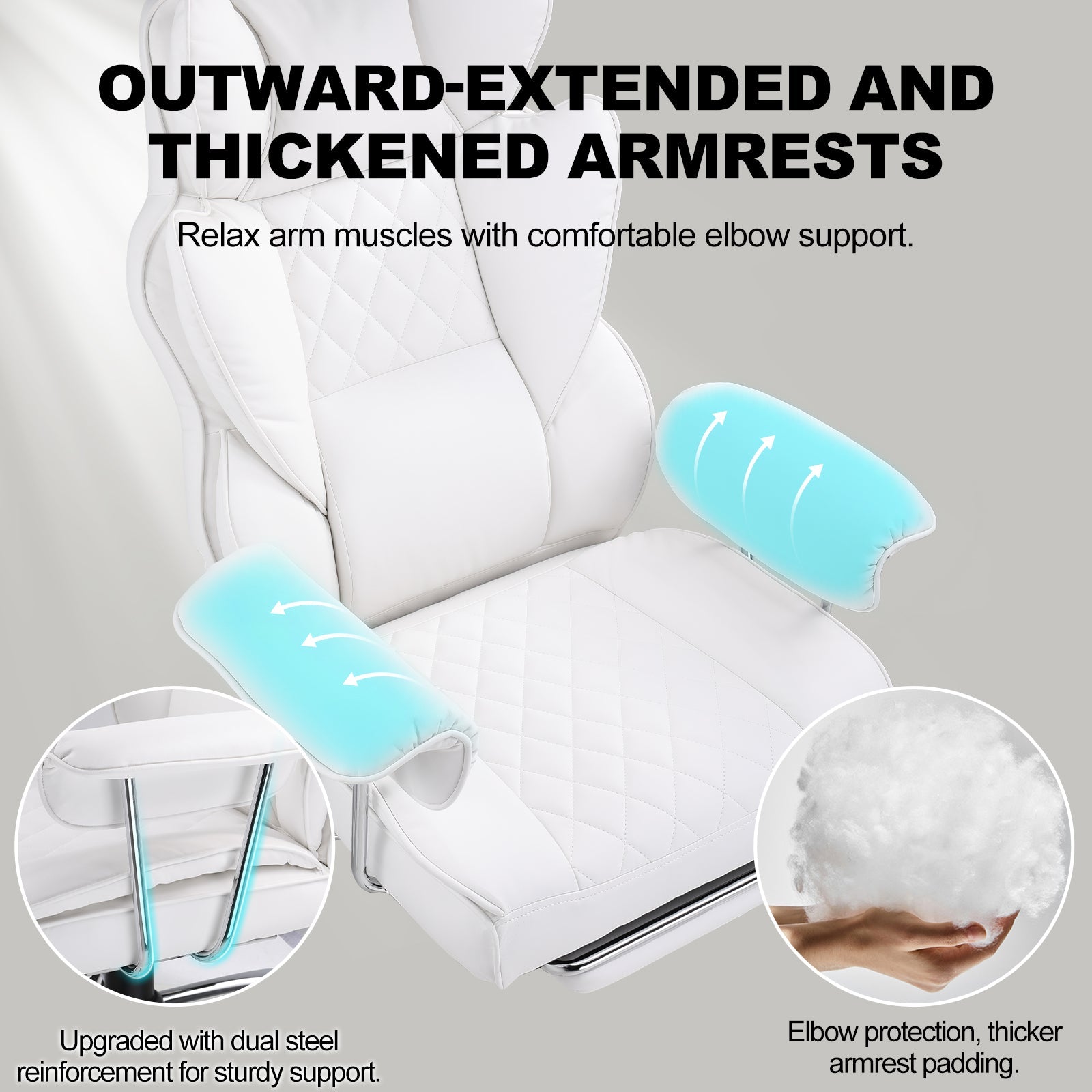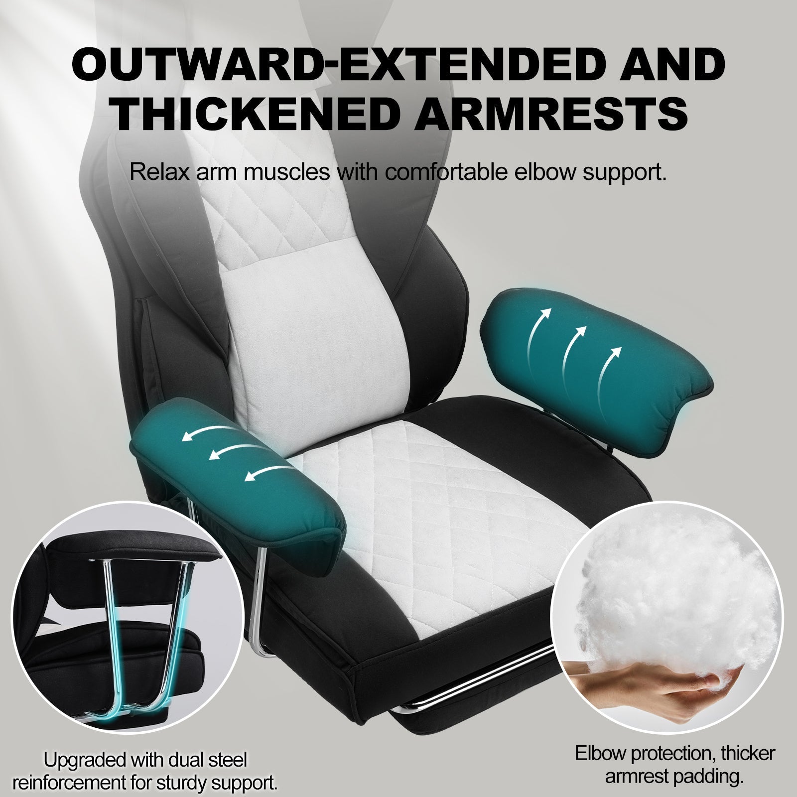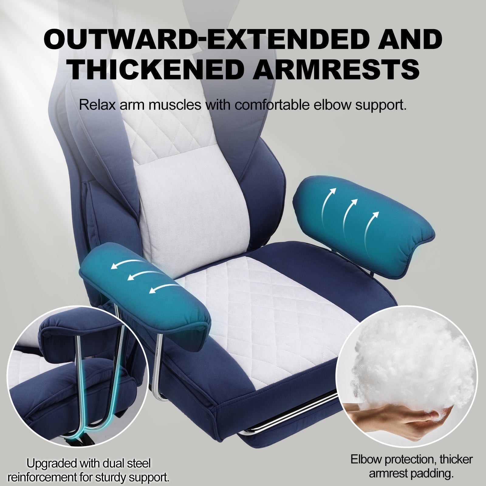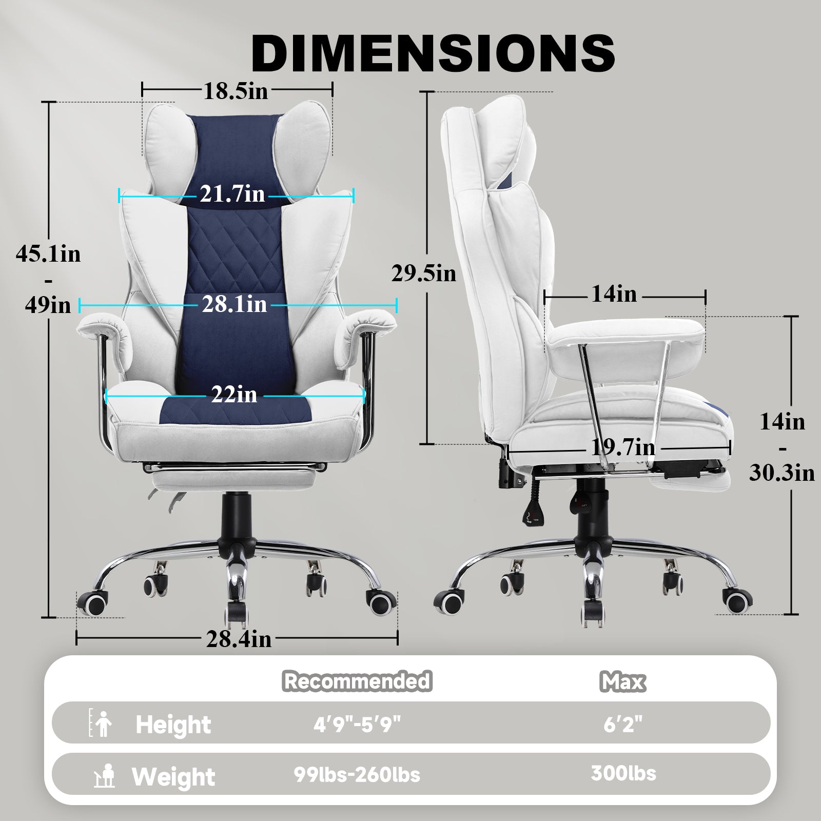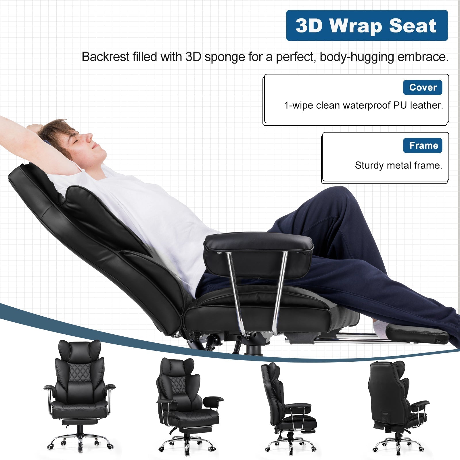 • 【Sofa-like Seat】 This executive chair features a pocket spring cushion, providing elasticity while helping to dissipate heat from prolonged sitting. The widened seat eliminates restricting side wings, coupled with an adjustable footrest, allowing you to sit in any position comfortably. It's as casual and free as sitting on your own sofa.