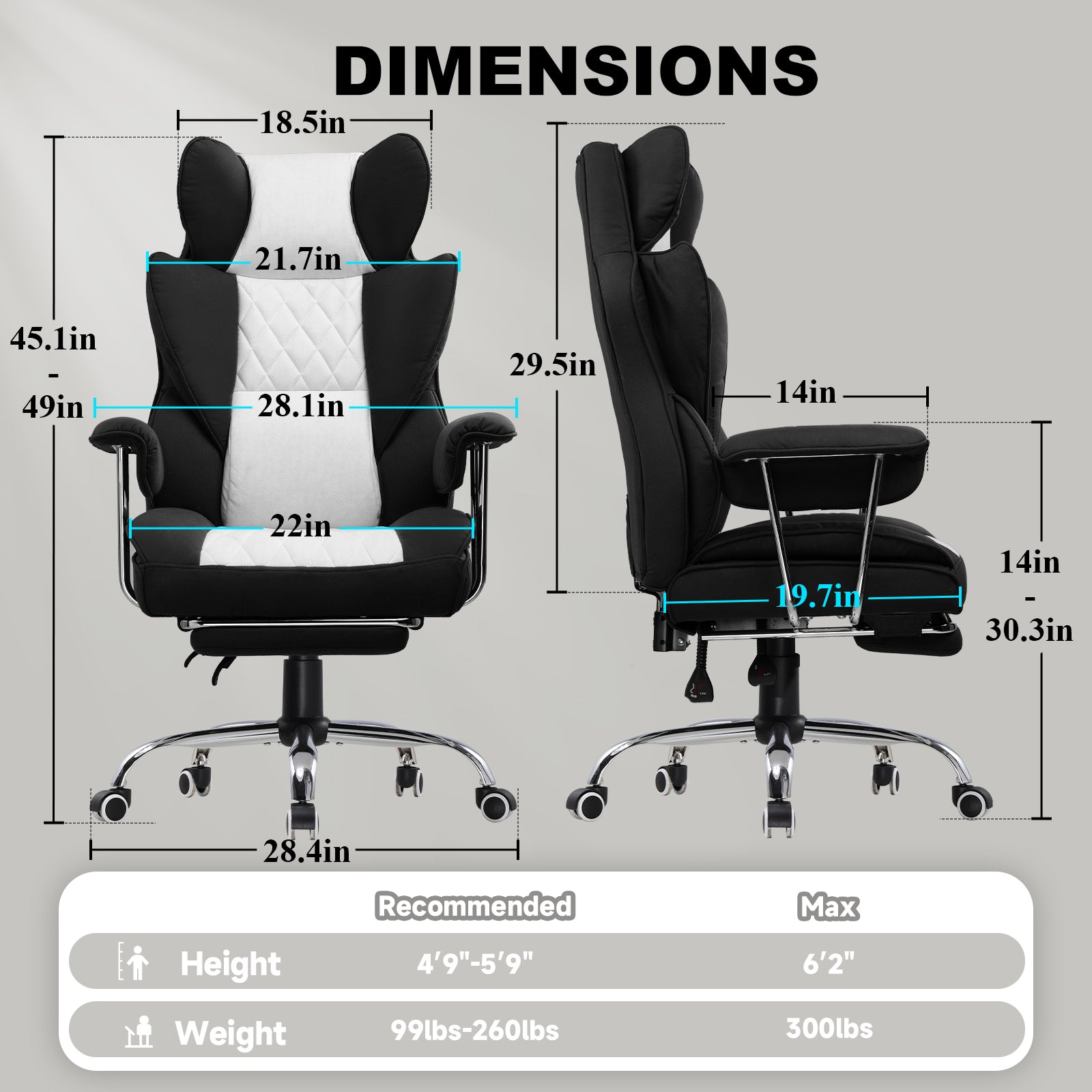 • 【Suitable for All】 This computer chair offers a 10cm height adjustment, catering to individuals of varying heights (5'1" to 6'2"). With a flexible recline ranging 90° - 130°, it accommodates various activities such as work, reading, entertainment, and relaxation. The 360° swivel seat and multi-direction casters allow you to glide and slide freely as you like.