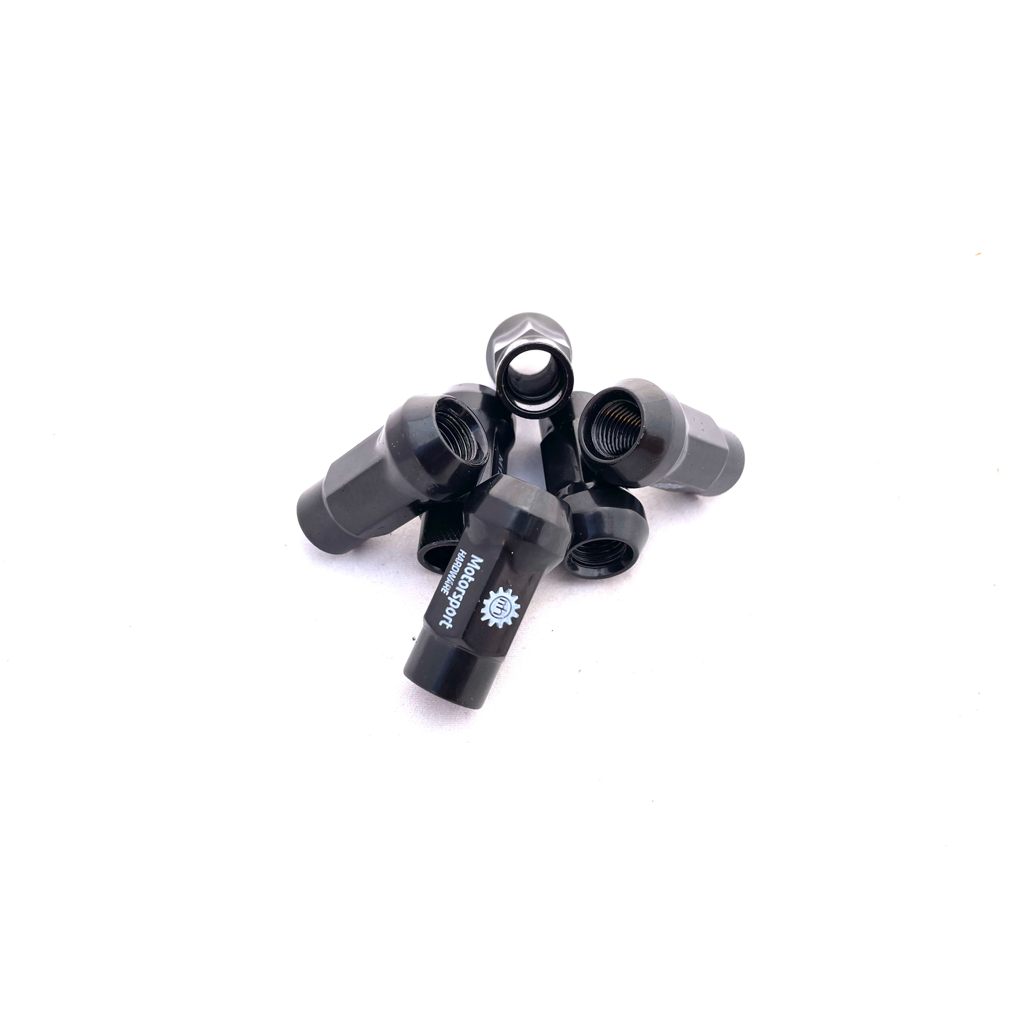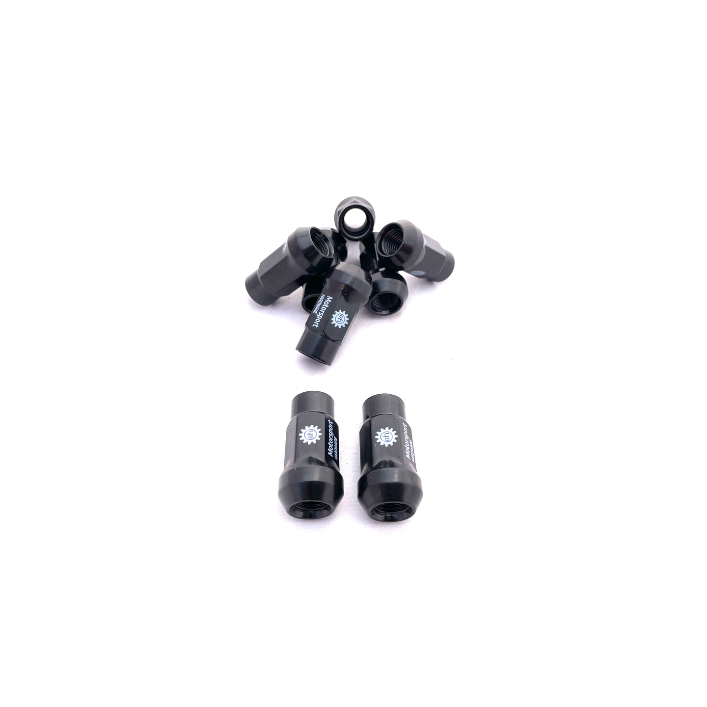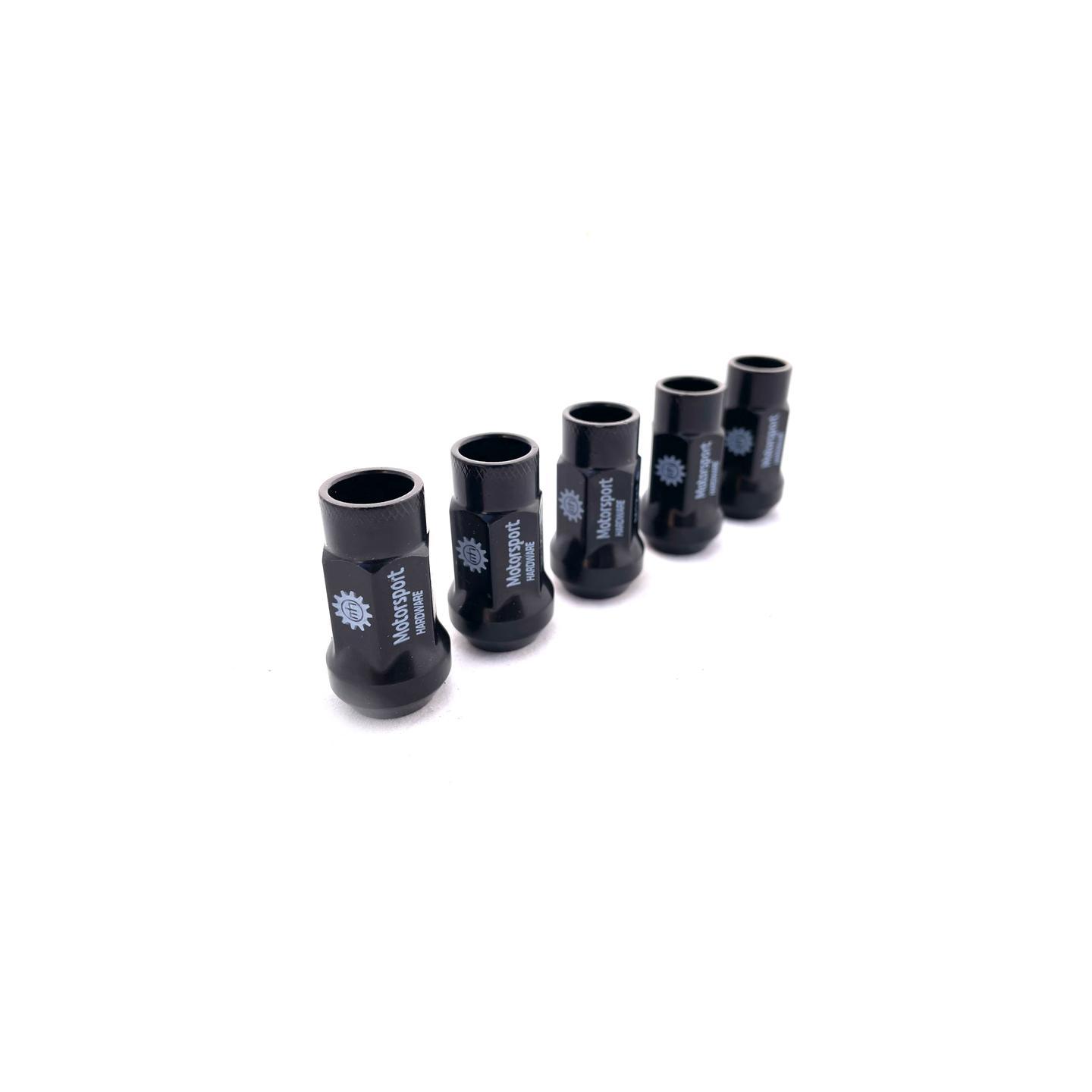 Looking for a little extra flare to your wheels while making it easier to remove and replace your wheels on track? Look no further, These extended lug, cold forged alloy, Motorsport Hardware Titan Race Nuts will surely do the trick and are the only ones we run on our cars. By having an extended lug, it protects exposed threads of long studs, and is ideal for repeated use. These Titan Race Nuts are manufactured with Aerospace alloy steel which has superior strength and durability compared to aluminum nuts. They are then heat treated to 10.9 hardness and an ultra durable alumite coating is applied to hold up to your impact sockets.