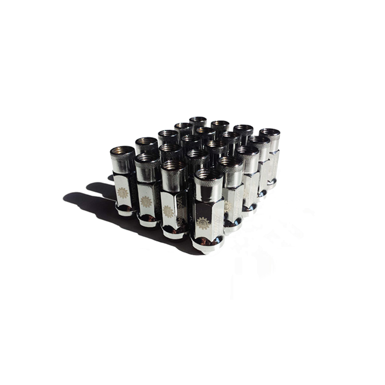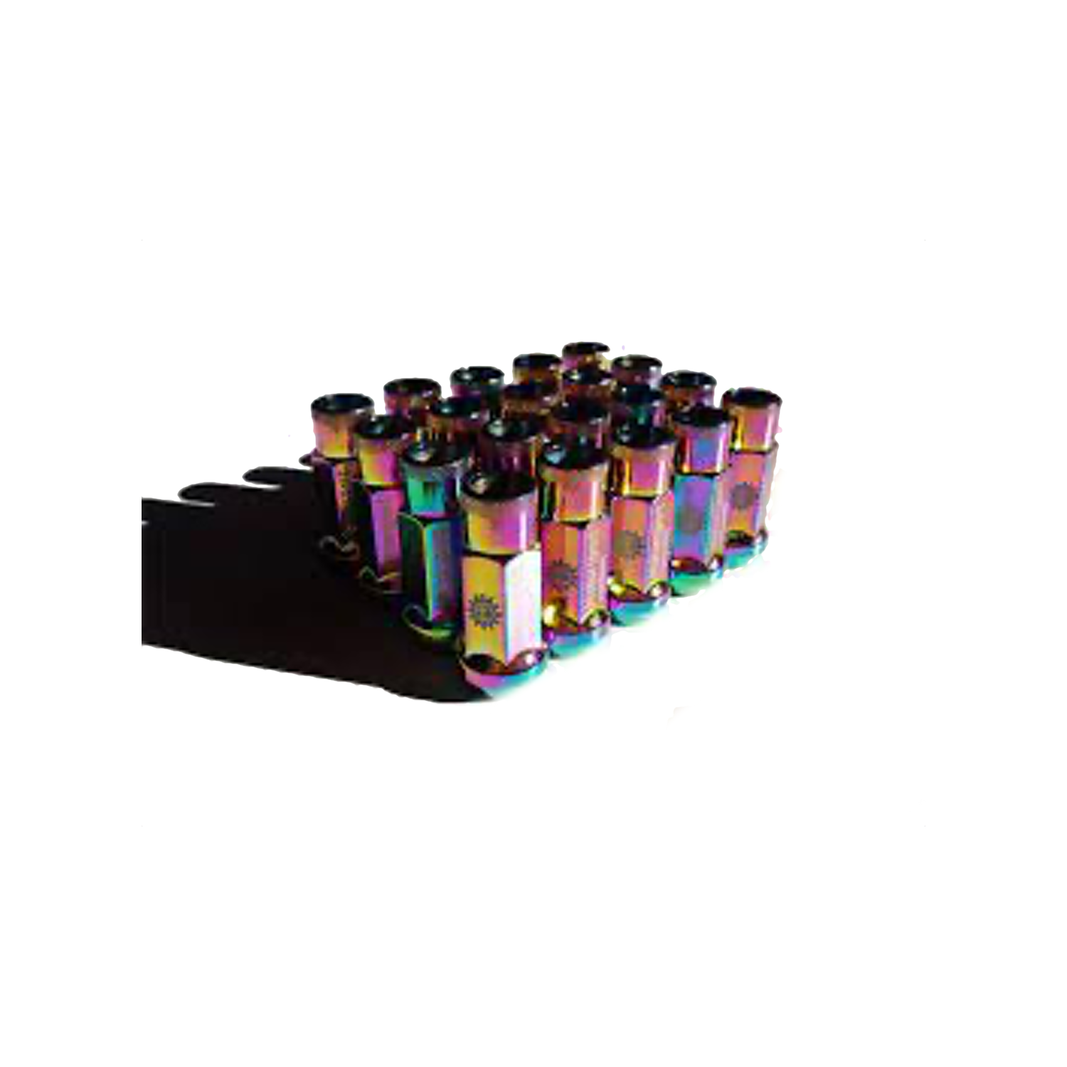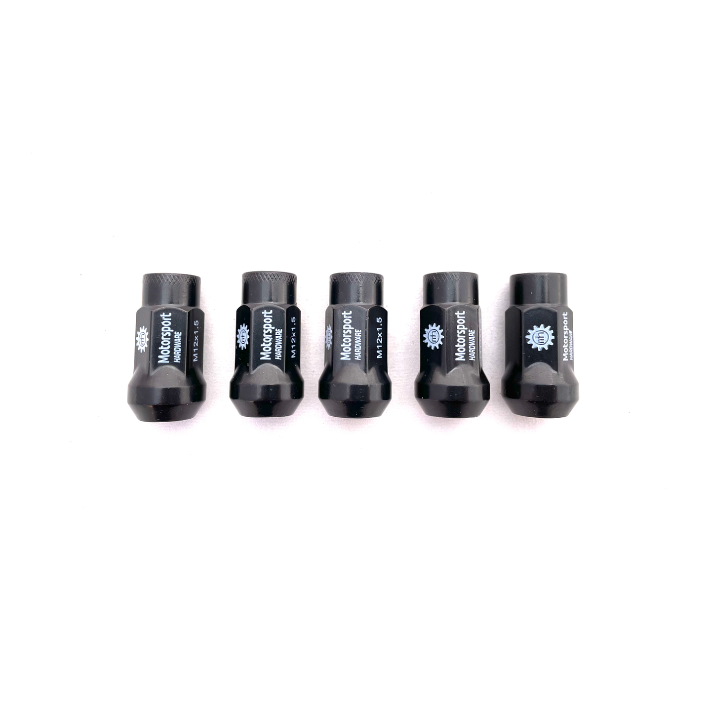Looking for a little extra flare to your wheels while making it easier to remove and replace your wheels on track? Look no further, These extended lug, cold forged alloy, Motorsport Hardware Titan Race Nuts will surely do the trick and are the only ones we run on our cars. By having an extended lug, it protects exposed threads of long studs, and is ideal for repeated use. These Titan Race Nuts are manufactured with Aerospace alloy steel which has superior strength and durability compared to aluminum nuts. They are then heat treated to 10.9 hardness and an ultra durable alumite coating is applied to hold up to your impact sockets.
