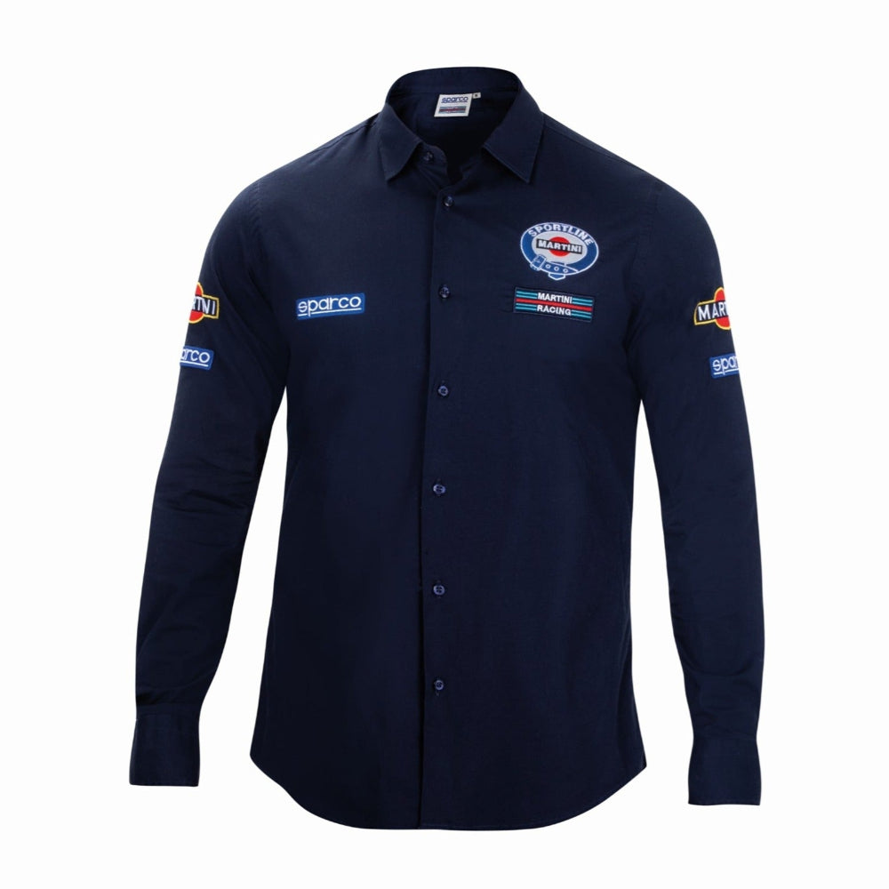 The Sparco Martini Long Sleeve Shirt brings legendary motorsport style to everyday life. Inspired by the iconic Sparco Martini Racing suit, this long sleeve, button-up shirt delivers bold track-day vibes wrapped in fine poplin comfort. Whether you're repping your favorite livery at a car show or bringing some grid energy to your weekend wear, this is the shirt that gets nods of approval from racers and fans alike.