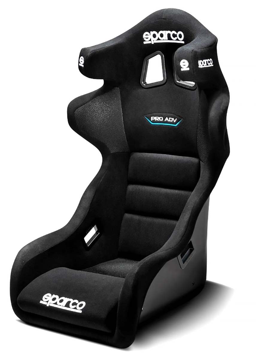 The Sparco Pro-ADV competition seat is the result of a collaborative partnership between Sparco and FIA. The goal was to identify ways to improve safety. The results are new levels in ergonomics, materials and above all safety, are all found in the Sparco Pro-ADV seat. Increased rigidity and the use of impact-absorbing materials are the major advances found in the Sparco Pro-ADV.  The Sparco ADV QRT holds the title of Sparco's Best head-restraint seat. Sparco has offered the Pro ADV for many years, but the latest update to the Pro ADV QRT is that it receives Sparco's QRT Ultra-Light Technology, offering an industry unmatched strength-to-weight ratio for fiberglass composite seats. The head restraint shape has been tweeked to better fit smaller cockpits, while the overall seat dimensions still fit Medium-to-Large drivers up to a 35" waist.