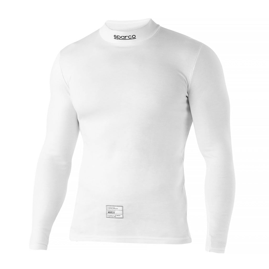 The RW-4 line of undergarments are designed to provide both comfort and protection. The Sparco RW-4 features soft-touch interlock fabric in the line's long-sleeved shirts, pants, balaclava, and mid-calf socks. This Sparco RW-4 Nomex undershirt is available in sizes Small through XX-Large. The RW-4 shirts are regular (i.e., not compression) fit.