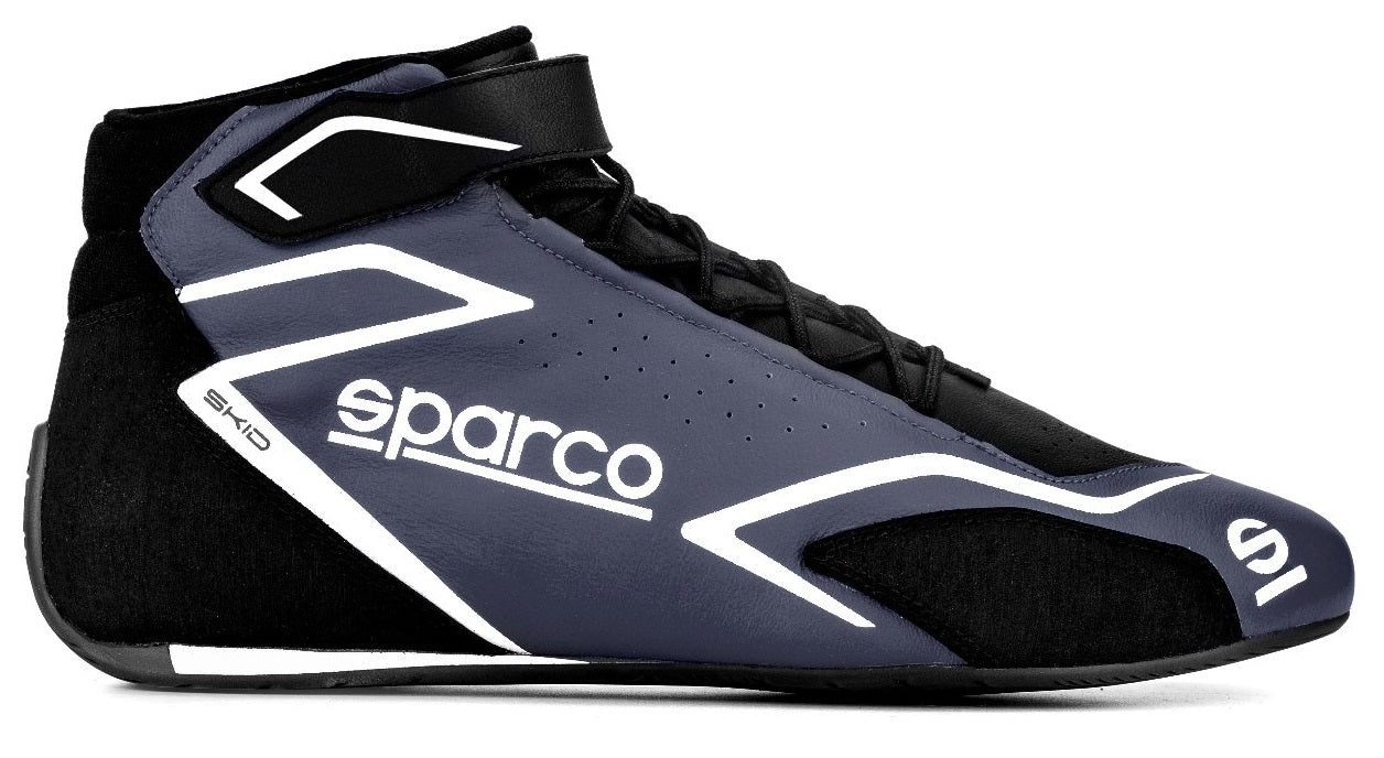 Sparco's Skid racing shoe is a unique lightweight design. Its ultra-soft leather upper features an offset closure system without a traditional shoe tongue. This design moves the potential pressure points of traditional laces from the top of your foot to the side, giving you unparalleled comfort. The Skid also features a stretch rear collar for flexibility. It has a comfortable cushioned inner sole and an all-new slim rubber sole that is anti-slip, anti-static, and oil and fuel resistant. All-new anti-static pure rubber outer sole features a special texture for better pedal grip. Available in five colors.