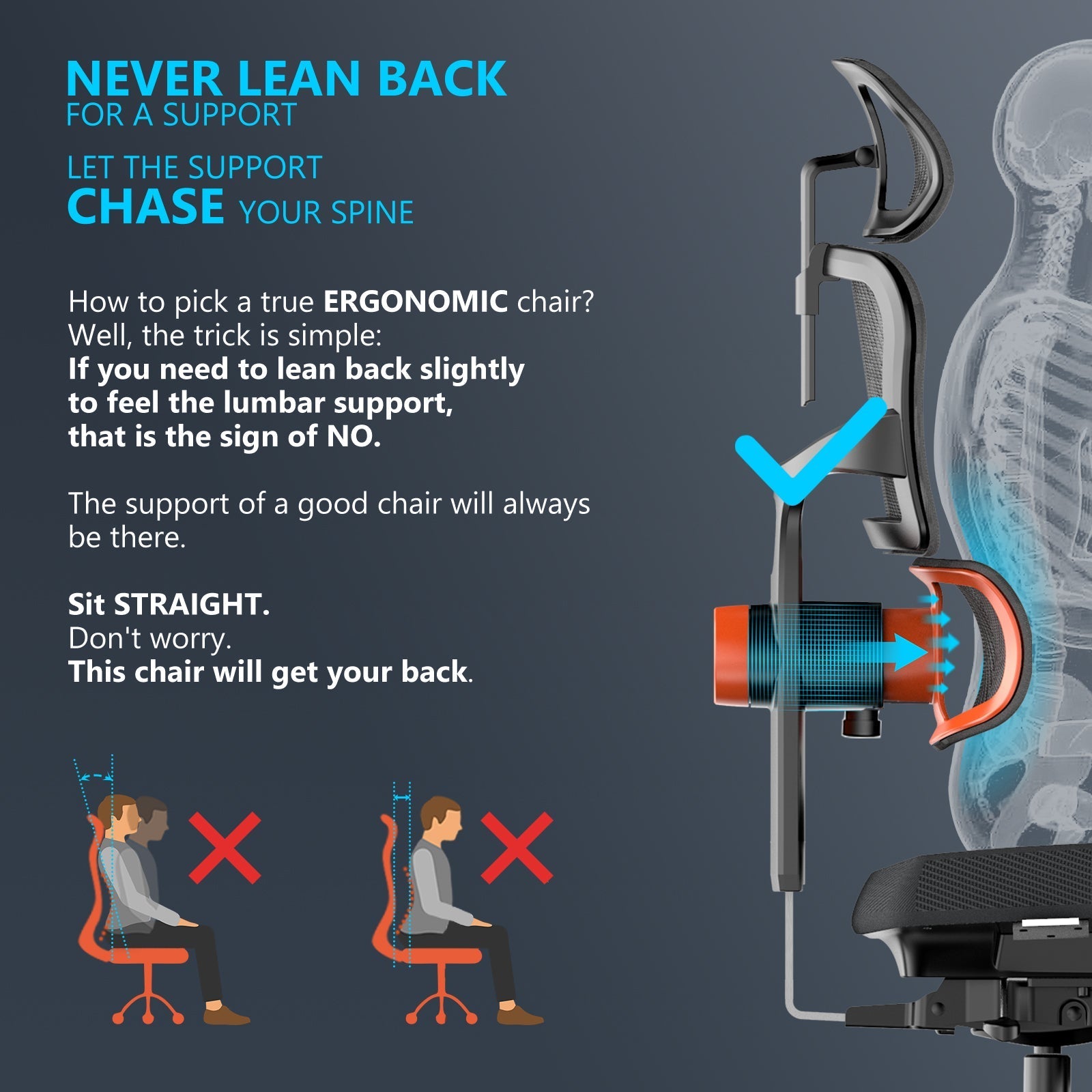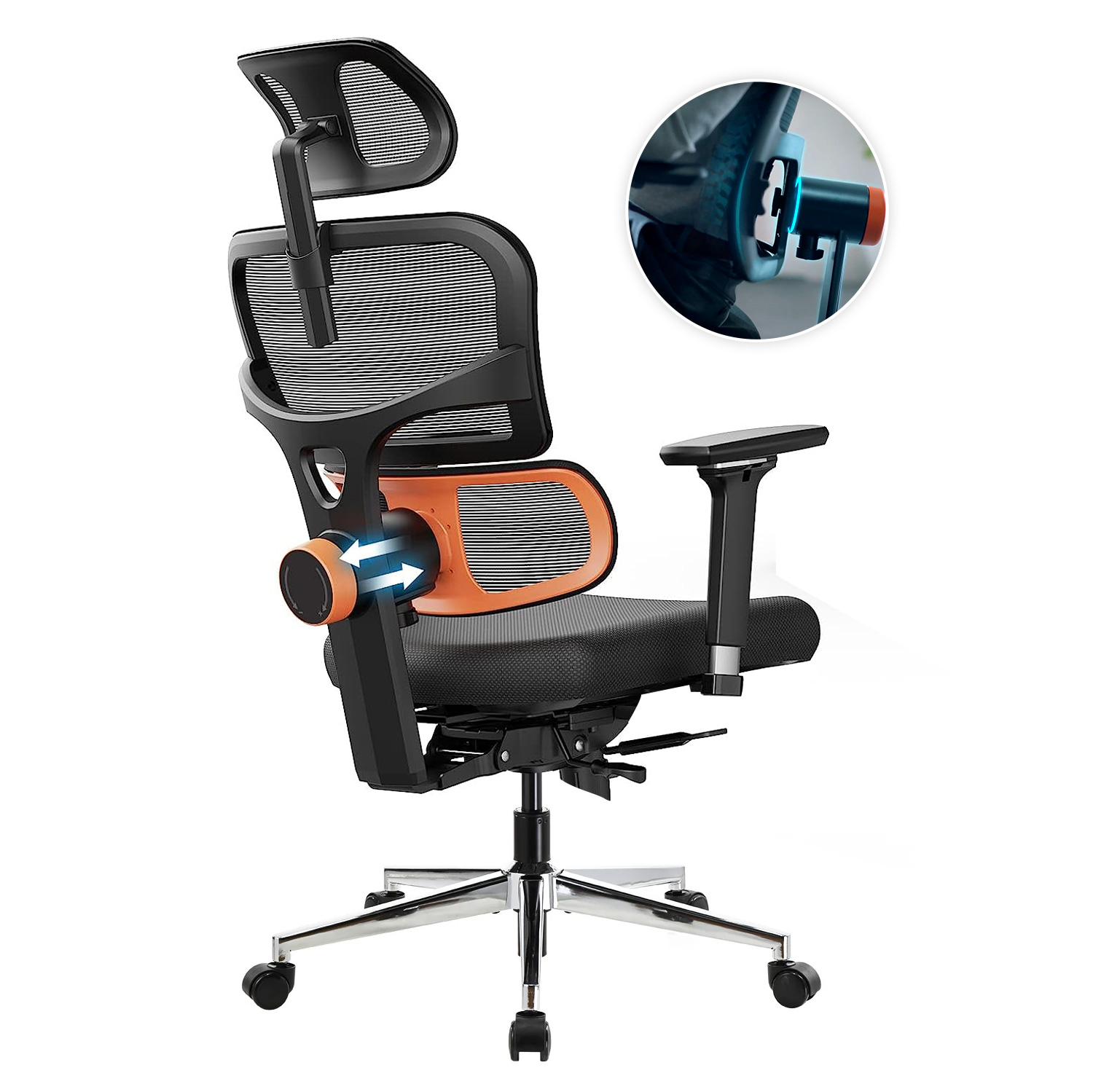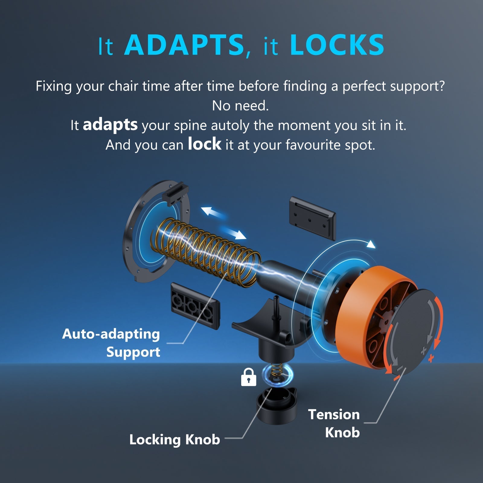 The auto chasing mechanism not only does it fill in your lower back and lift your spinel You also have the option of unlocking the lumbar to give you the ability to flex and move with your body while flex and move with your body while still being supported
