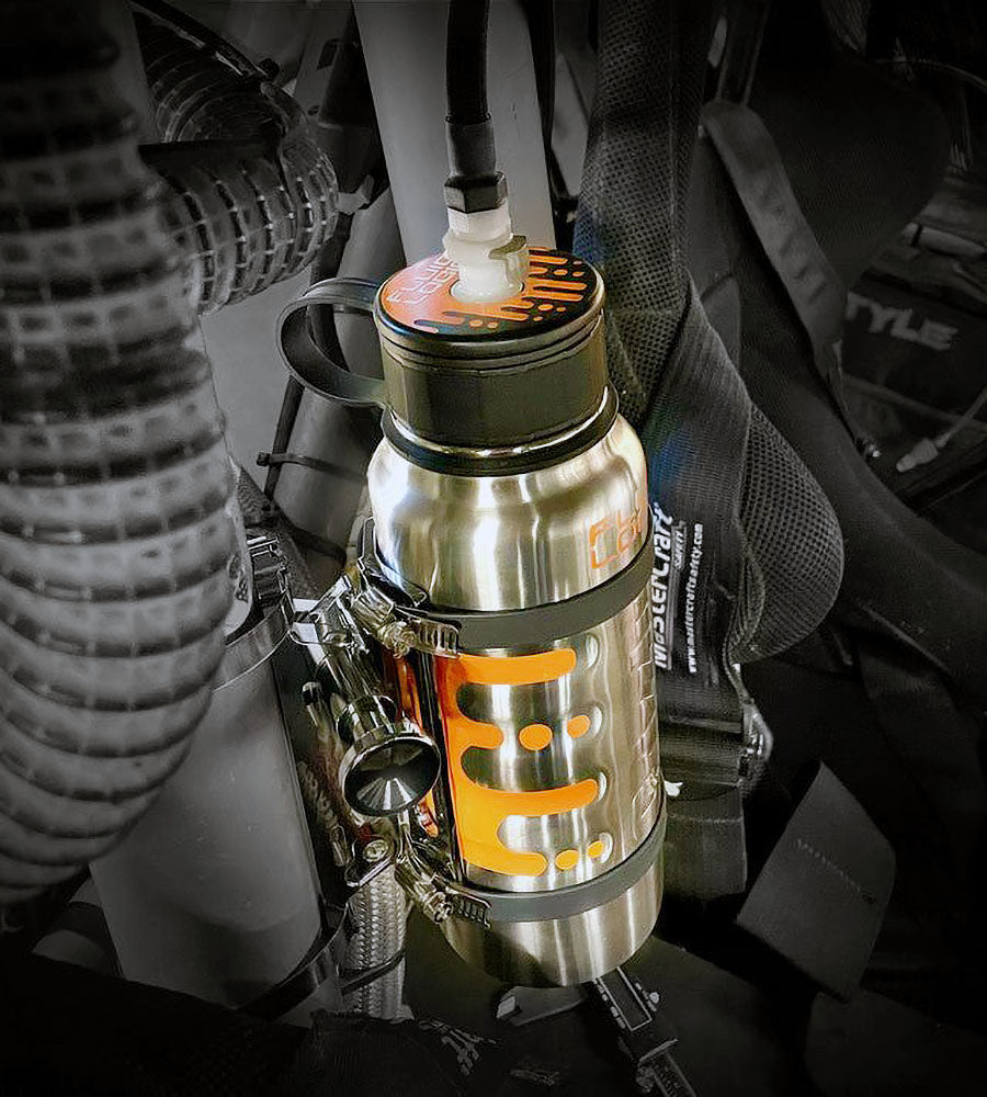 - Quick release bottle mount secures to any roll bar for convenient filling