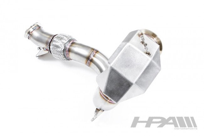 MQB FWD downpipes come standard with our 300 cell metal cat, the same quality of cats used on all HPA twin turbo high performance vehicles.
