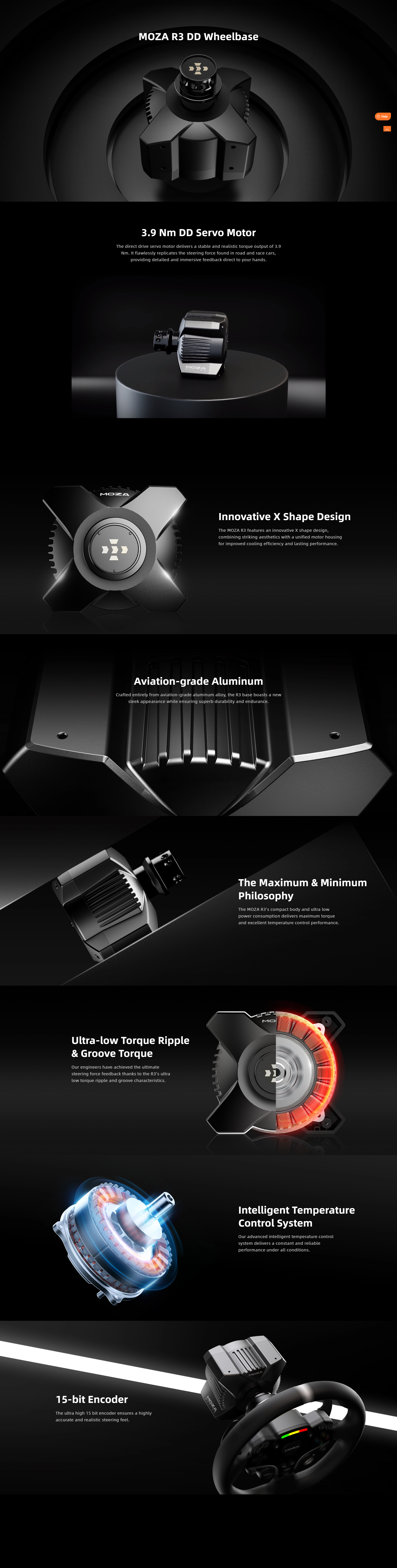 Adhering to the "Maximum & Minimum Philosophy," the R3 Direct Drive Wheel Base is compact and power-efficient without compromising on performance. Enjoy maximum torque and superior temperature control, perfect for any gaming setup. Constructed from aviation-grade aluminum, the R3 is built to last while maintaining a sleek look. Its durable material ensures it can withstand the rigors of intense racing sessions.