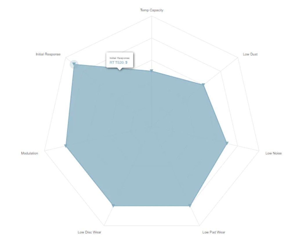 The TS20 is the ideal dual purpose compound for street and light track use. The TS20 combines an aggressive initial bite, good heat resistance all while keeping dust and noise to a minimum. TS20 are offered for a select range of OEM Brembo caliper shapes.