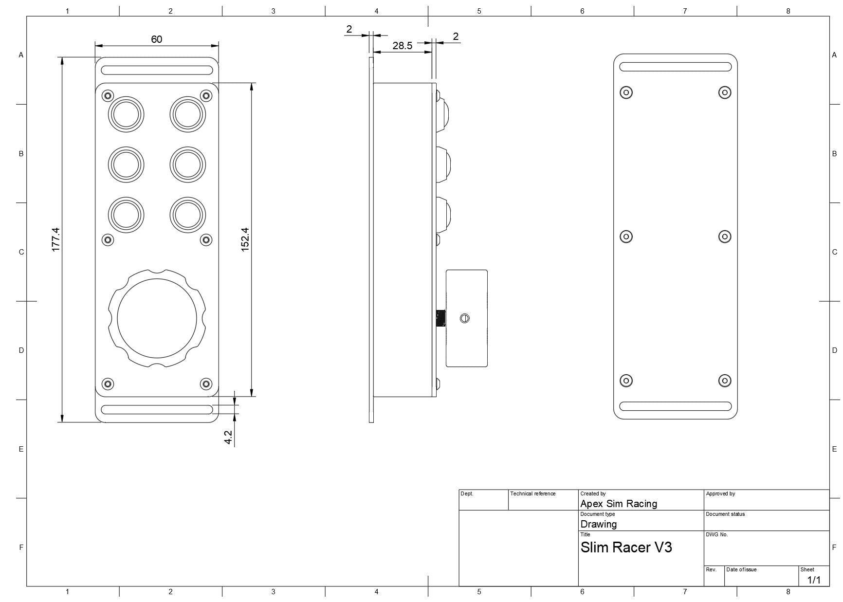 Transform your racing rig with the Apex Slim Racer Button Box. Choose from our three distinct designs to match your racing style and take your performance to the next level. Order yours today and experience the precision and quality that only Apex Sim Racing can deliver.